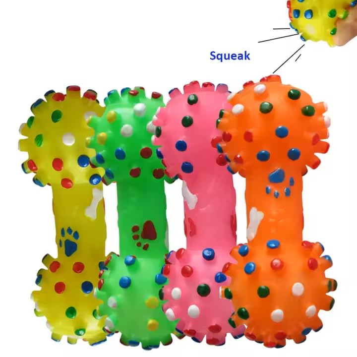 This set of two colorful dumbbell-shaped toys features an internal squeaker that creates an exciting sound to keep your dog engaged during play. Made from durable, non-toxic rubber, these toys are built to withstand chewing, tugging, and fetching, while remaining safe for your pet. Whether you're playing fetch, tug-of-war, or allowing your dog to enjoy solo play, these squeaky dumbbells provide hours of fun and exercise. The vibrant printed design ensures they are easy to spot, whether youÕre indoors or outdoors. Ideal for dogs of all sizes, these toys are perfect for promoting physical and mental stimulation while satisfying your dog's natural chewing instinct.